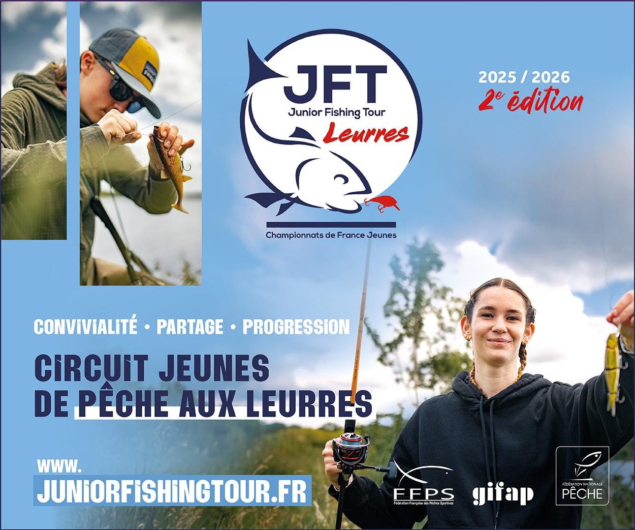 Le Junior Fishing Tour (JFT) est une nouvelle compétition de pêche à destination des jeunes (-18 ans). Elle est née d’un partenariat entre la Fédération Nationale de la pêche en France (FNPF), la Fédération de pêche sportive (FFPS) et le GIFAP (regroupement des grandes marques de la pêche de France).