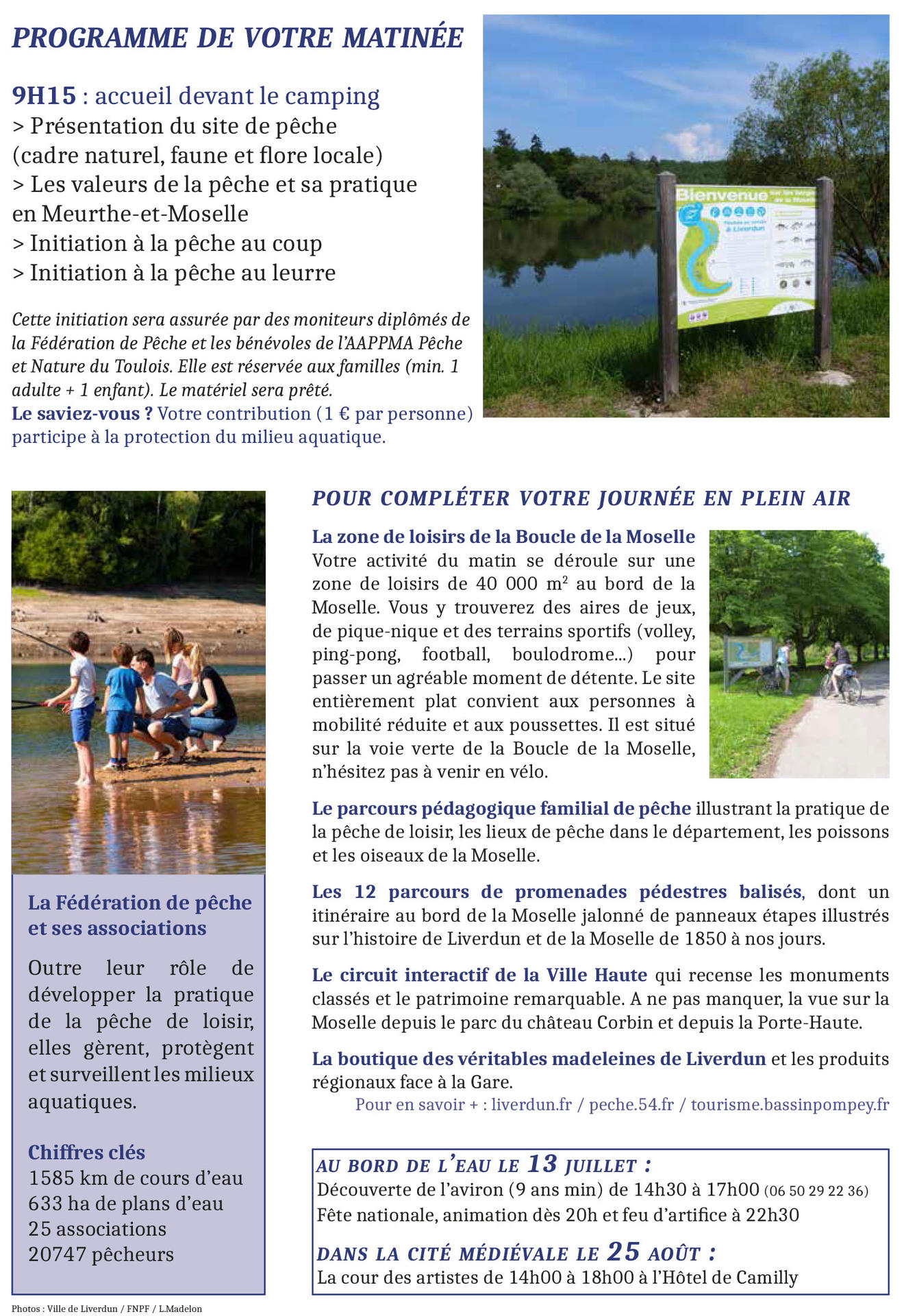 Cet été, c’est possible ! En collaboration avec la Fédération départementale de pêche et l’Association pêche et nature du Toulois, la mairie de Liverdun organise 2 demies journées d’initiation à cette activité de nature, à pratiquer seul, entre amis ou en famille.